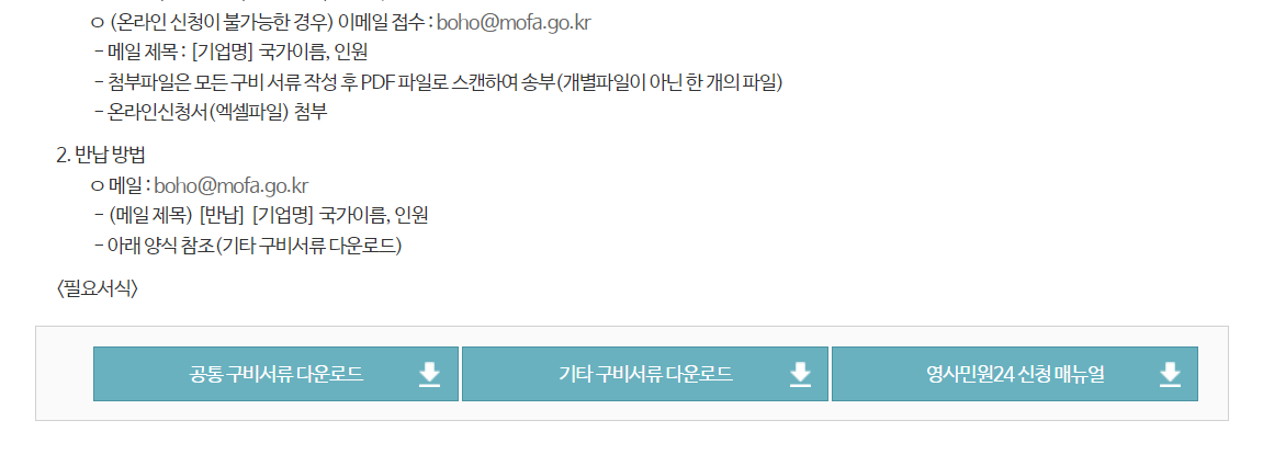 온라인 신청이 불가능한 경우에 한하여 이메일 접수 가능